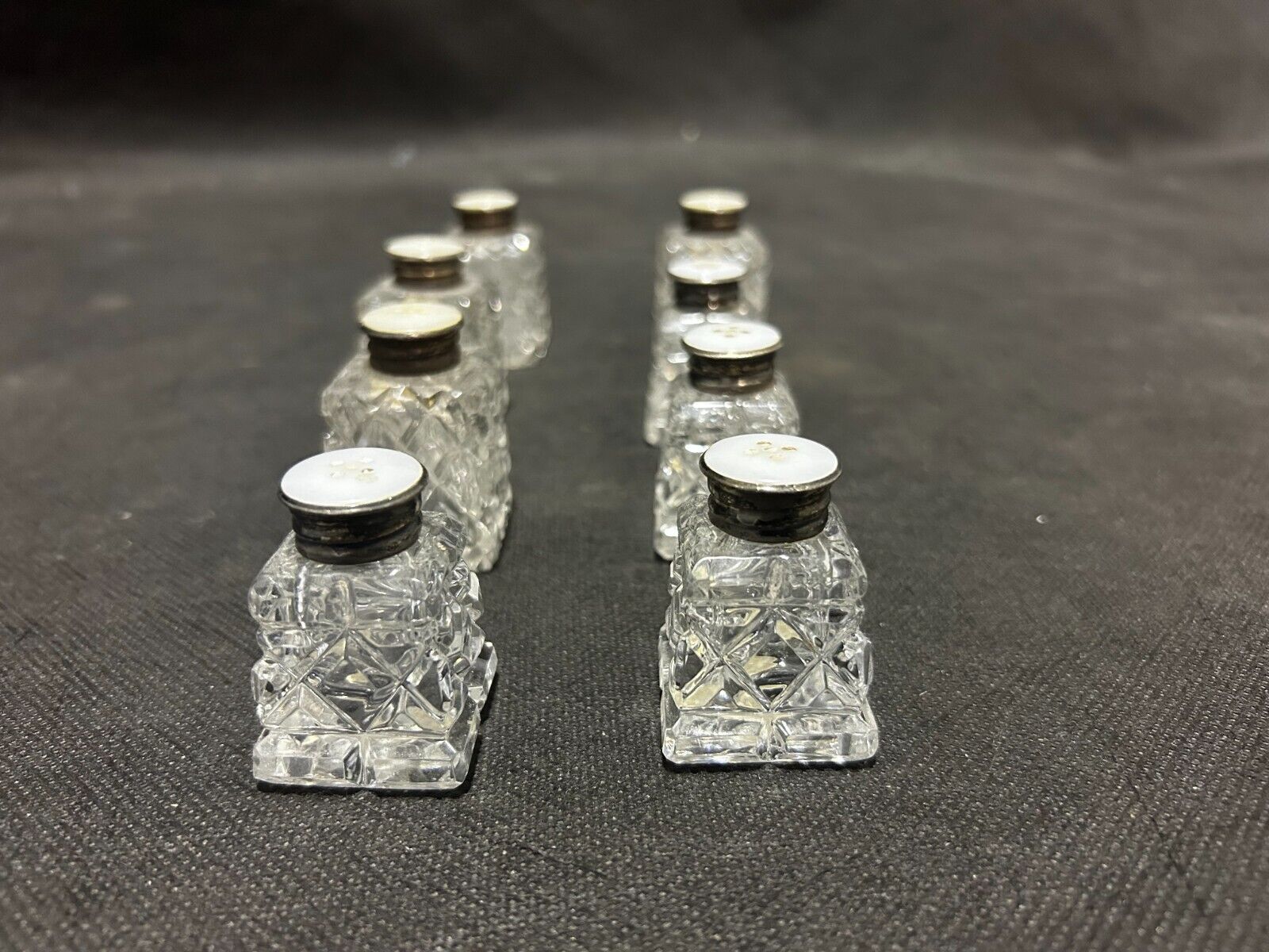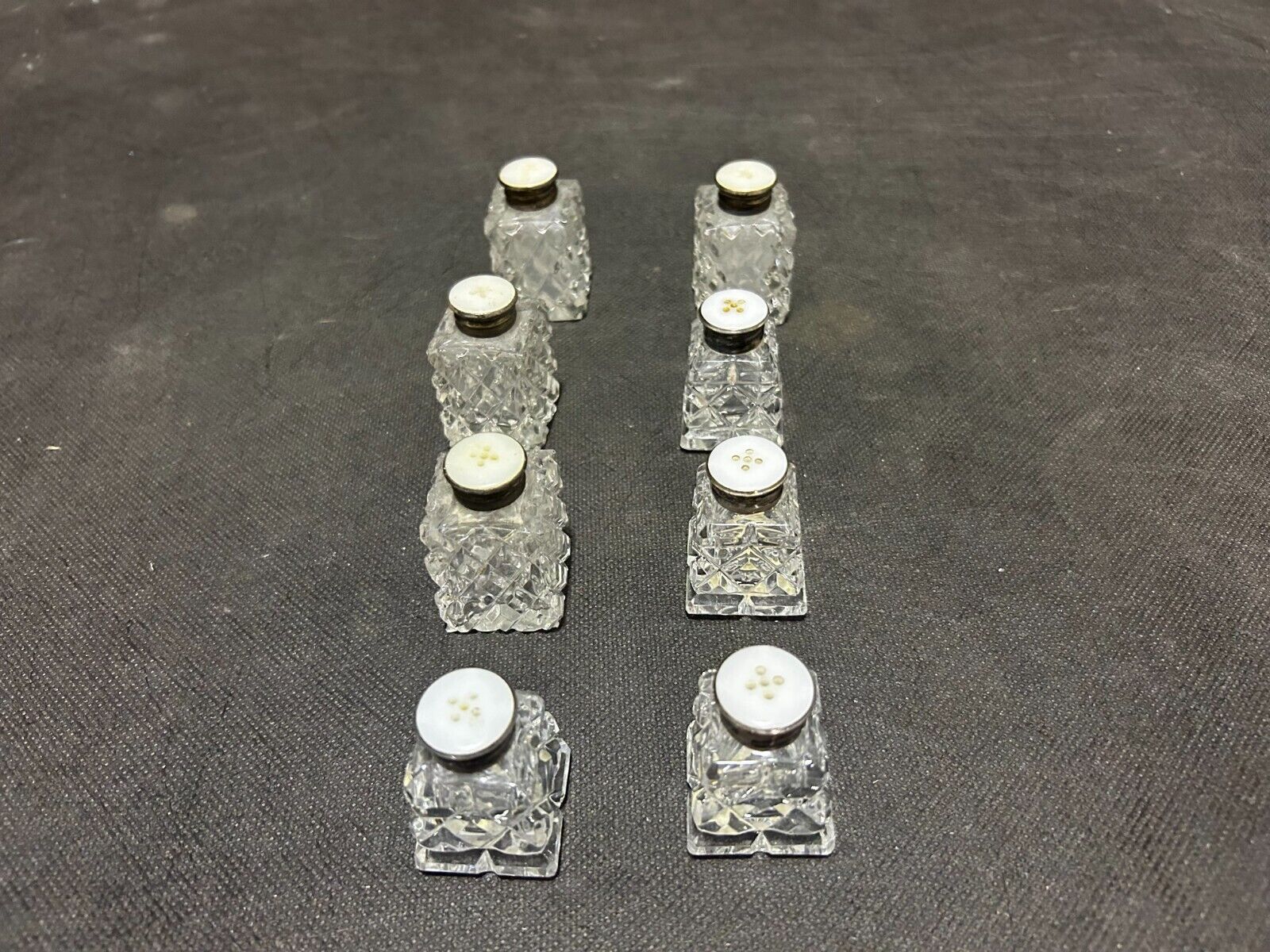 Thank you for viewing our listing for: Sterling / Cut Crystal Salt and Pepper lot of 8