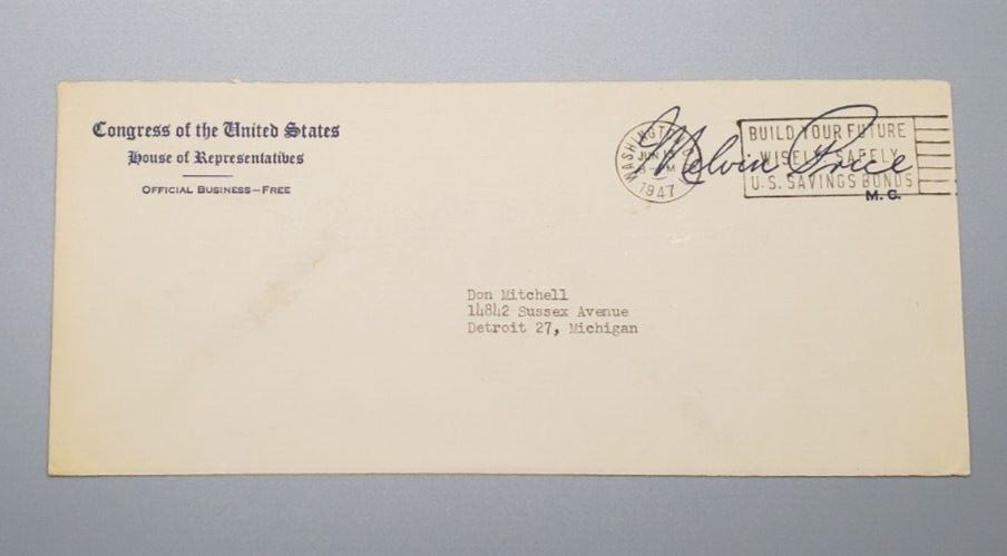 1947 Autograph Melvin Price Signed Congress of the United States (with envelope)