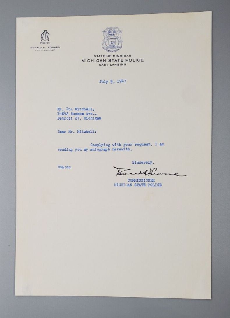 1947 Commissioner Donald S. Leonard Autograph Signed