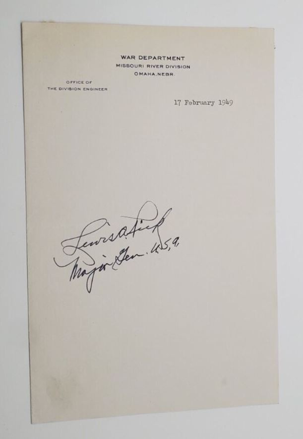1949 Military Letter Lewis A. Pick War Department Missouri River Division