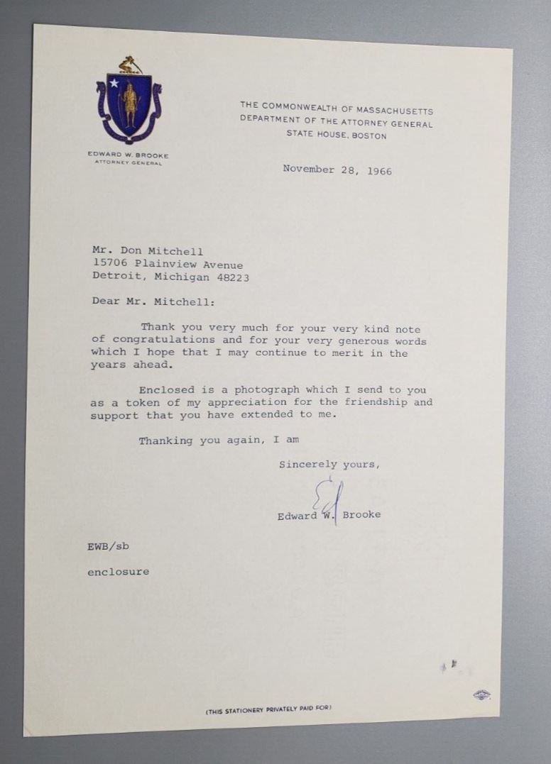 1966 Autograph Attorney General Edward W. Brooke Signed