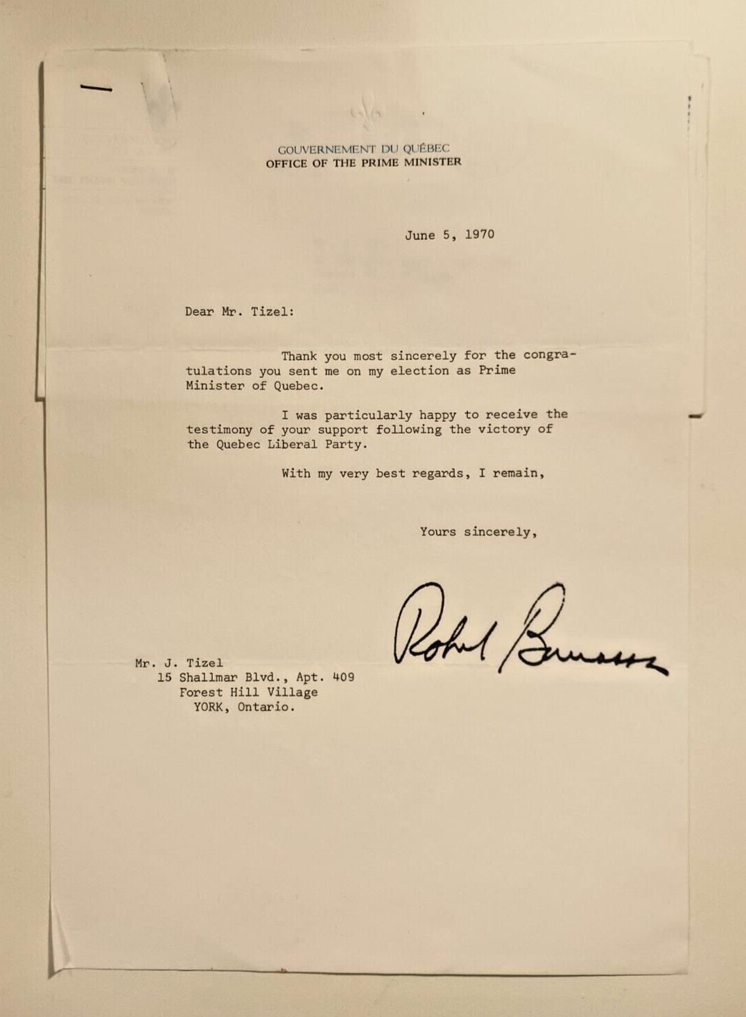 1970 Premiers of Quebec Robert Bourassa Signed Autograph Letter