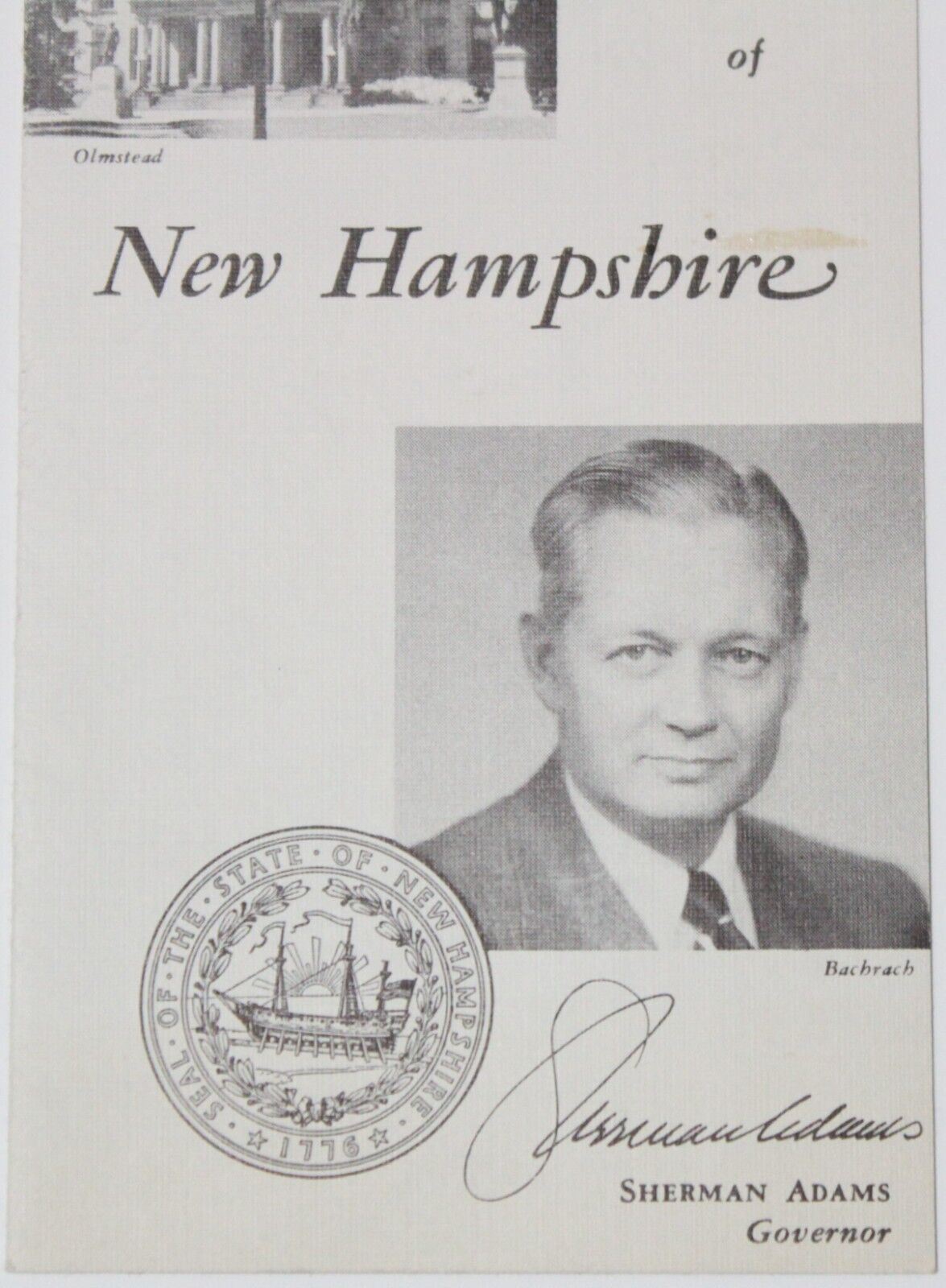 Sherman Adams Autographed Card & Brochure (Governor of New Hampshire, 1949-1953)