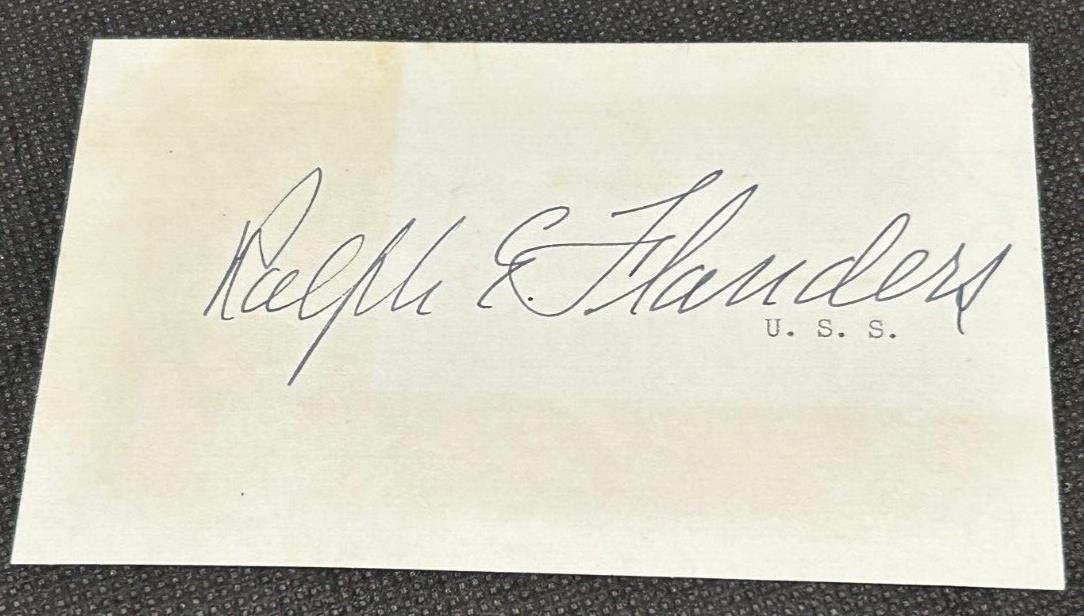 Signed Autograph Card of Ralph E. Flanders Senator of Vermont, EX