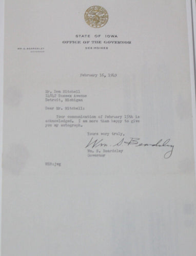 William S. Beardsley Autograph (Governor of Iowa, 1949-1954)