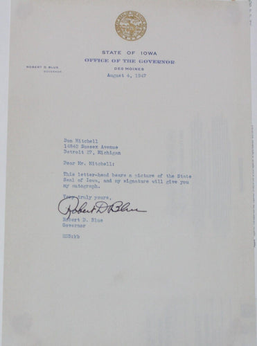 Robert D. Blue Autograph (Governor of Iowa, 1945-1949)