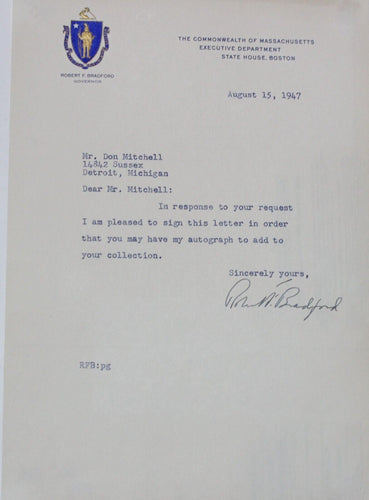 Robert F. Bradford Autograph (Governor of Massachusetts, 1947-1949)