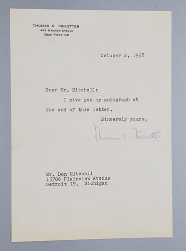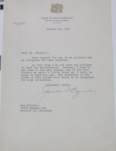 James F. Byrnes Autograph (Governor of South Carolina, 1951-1955)