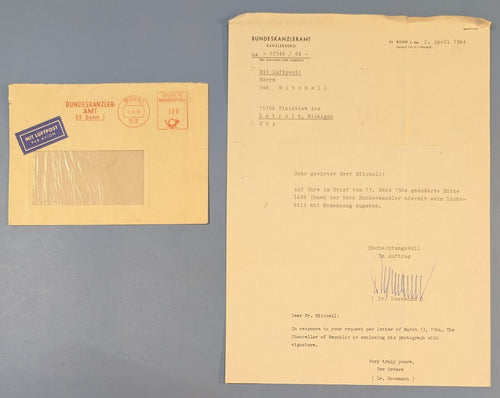 1964 German Bundeskanzleramt TLS Signed Letter + Envelope to USA Dr. Dossmann
