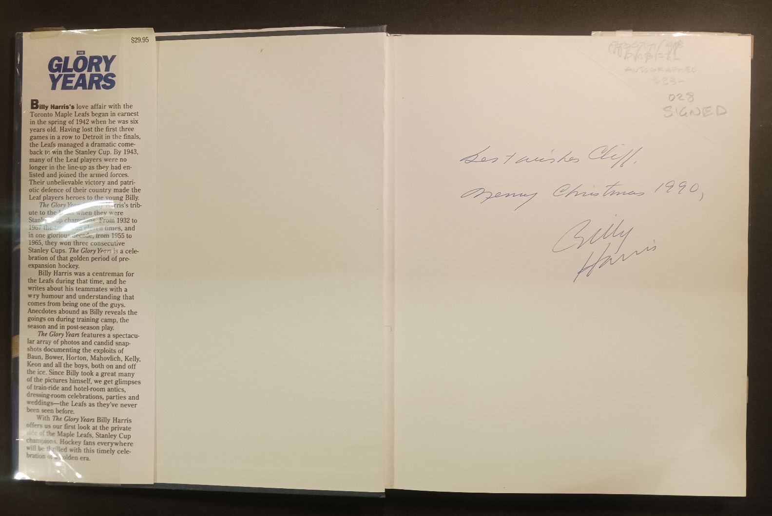 Signed Billy Harris 1990 The Glory Years Toronto Maple Leafs Hard Cover Book