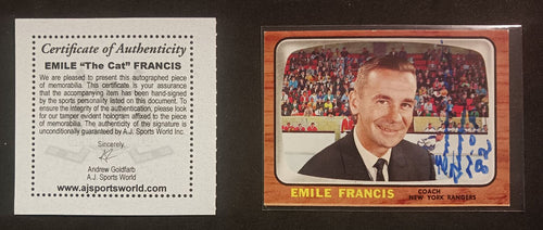 Emile "The Cat" Francis #21 Hockey Card Signed with Certificate of Authenticity
