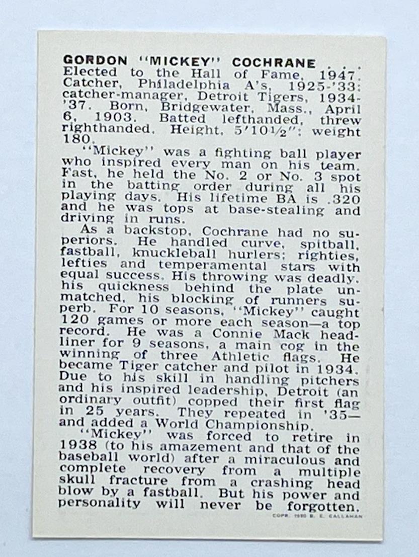 1950 CALLAHAN Hall of Fame Mickey Cochran Great Condition Well Centered