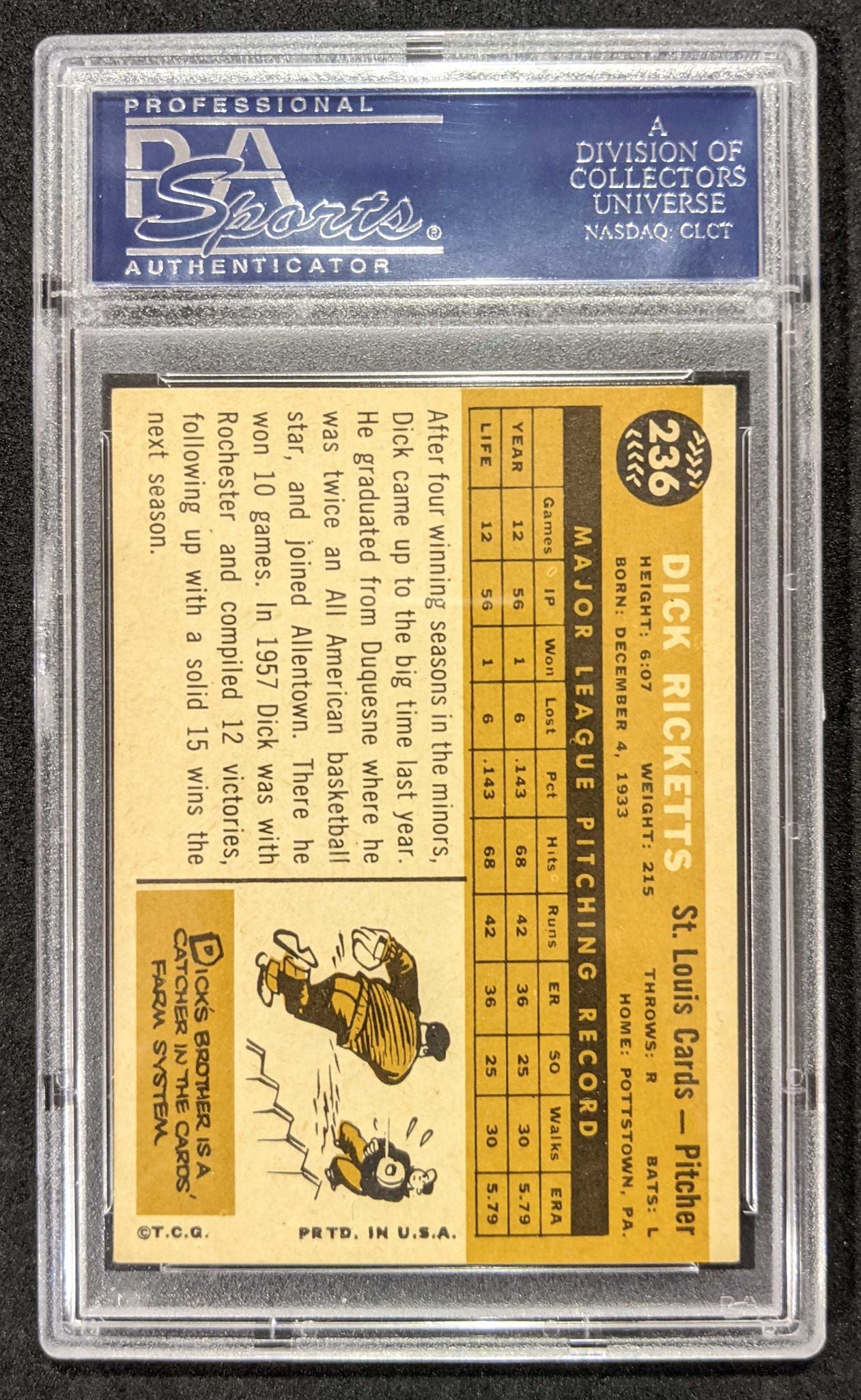 1960 Topps Dick Ricketts #236 PSA NM 7, 16162155