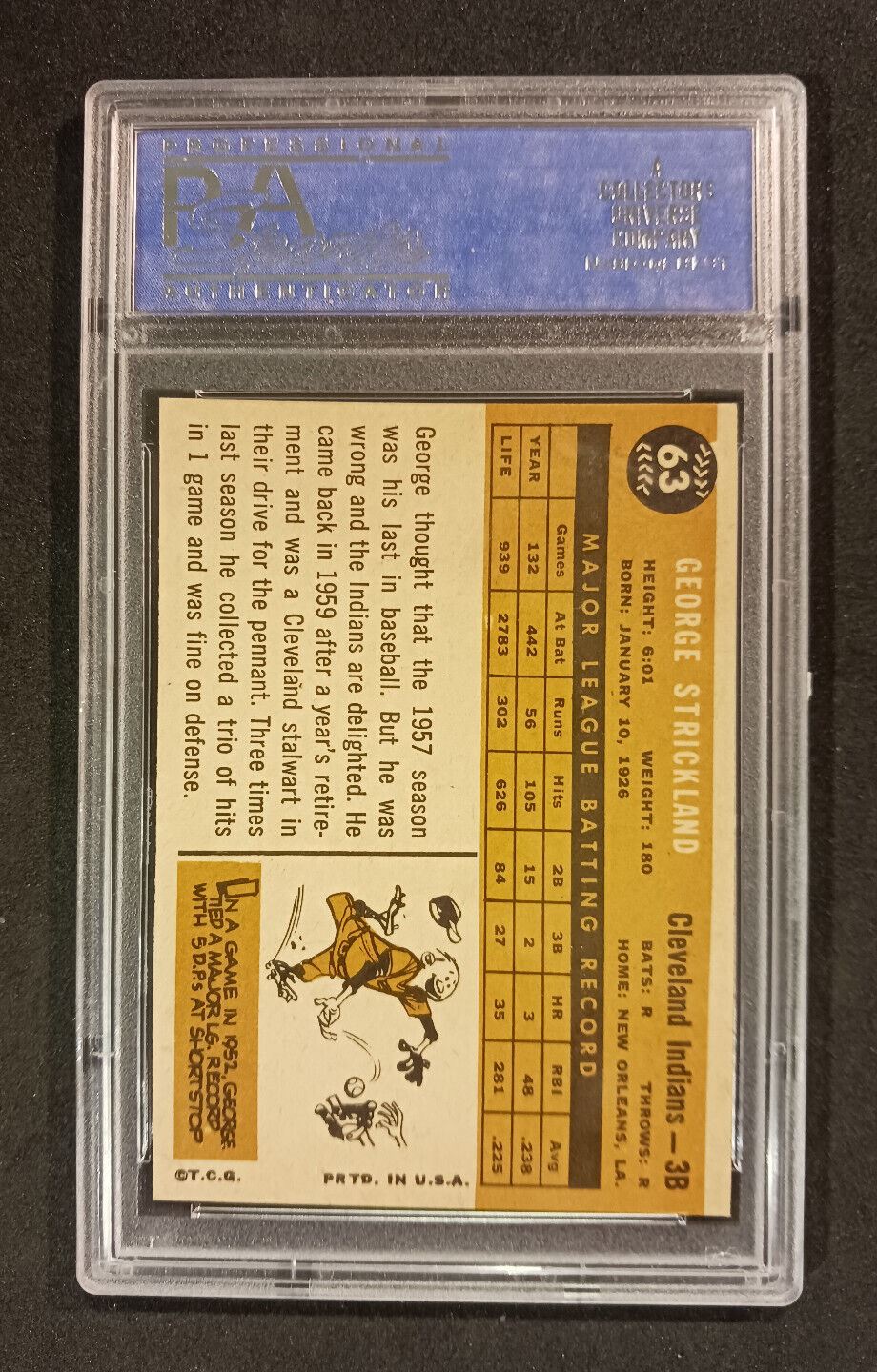 1960 Topps George Strickland #63 PSA NM-MT 8 Serial #30149382