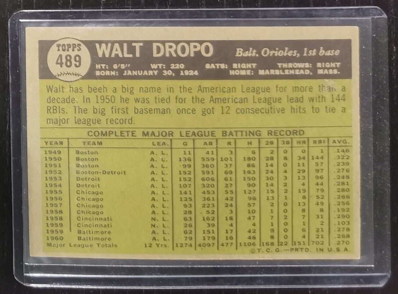 Thank you for viewing our listing for: 1961 Topps Walt Dropo Baseball Card #489