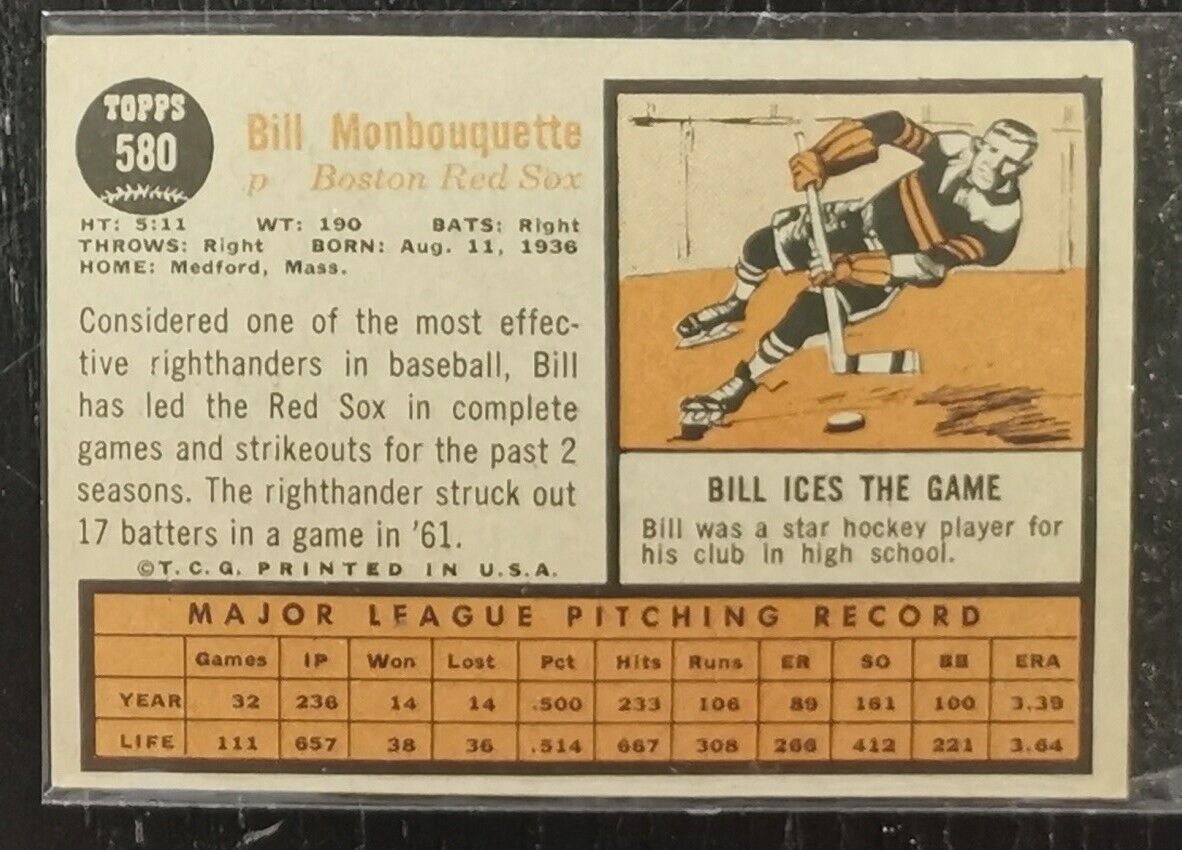 Thank you for viewing our listing for: 1962 Topps Bill Monbouquette #580 Baseball Card VG-EX
