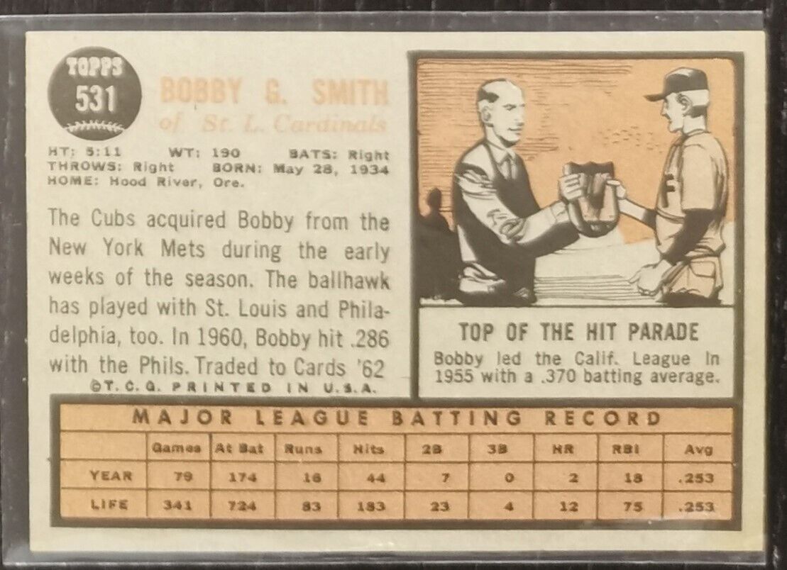 Thank you for viewing our listing for: 1962 Topps Bobby G. Smith #531 Baseball Card VG-EX