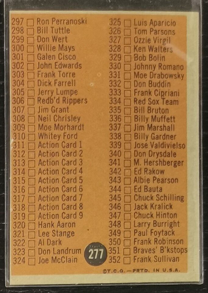 Thank you for viewing our listing for: 1962 Topps Checklist 4th Series #277 Baseball Card EX