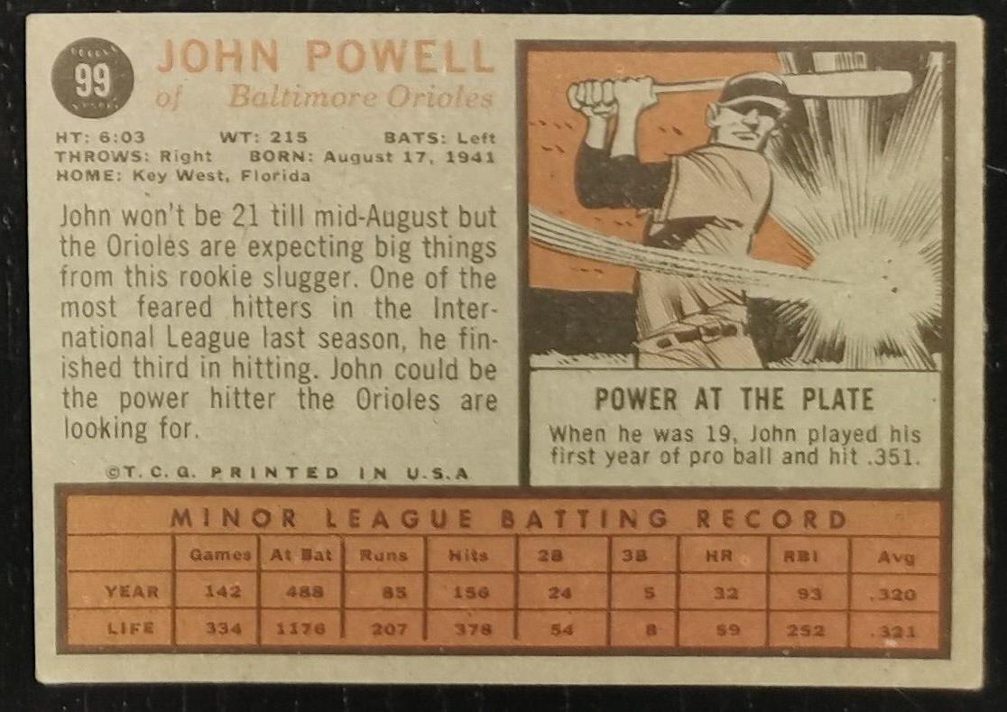 Thank you for viewing our listing for: 1962 Topps John Powell #99 Baseball Card VG-EX