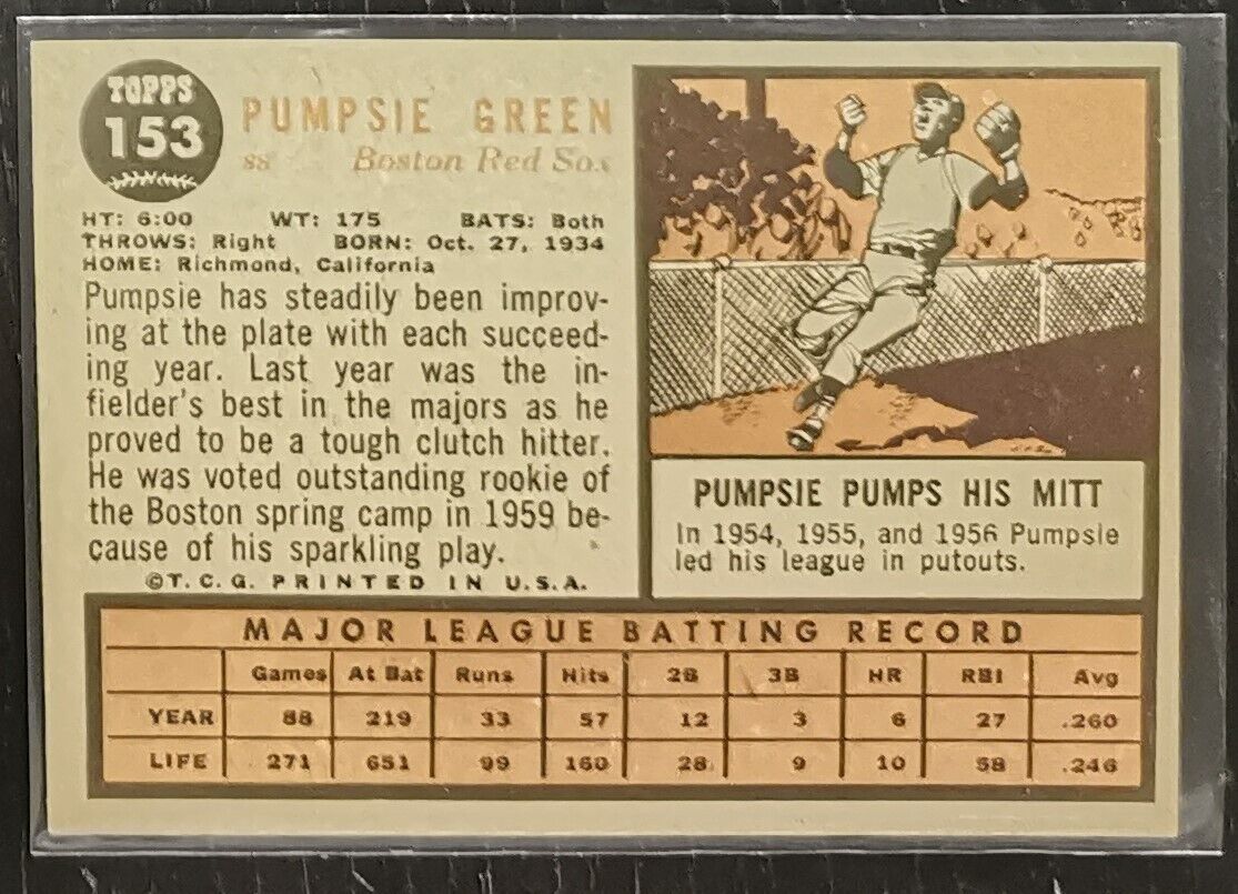 Thank you for viewing our listing for: 1962 Topps Pumpsie Green #153 Baseball Card EX