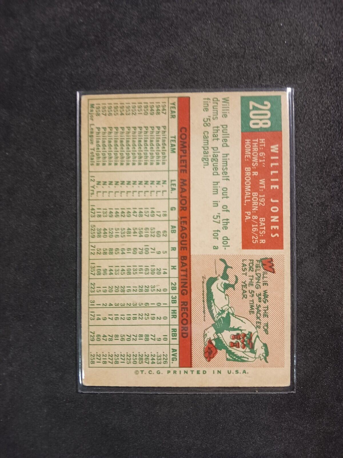 Thank you for viewing our listing for: 2008 Topps Heritage 50th Anniversary 1959 Buybacks #208 Willie Jones White Back