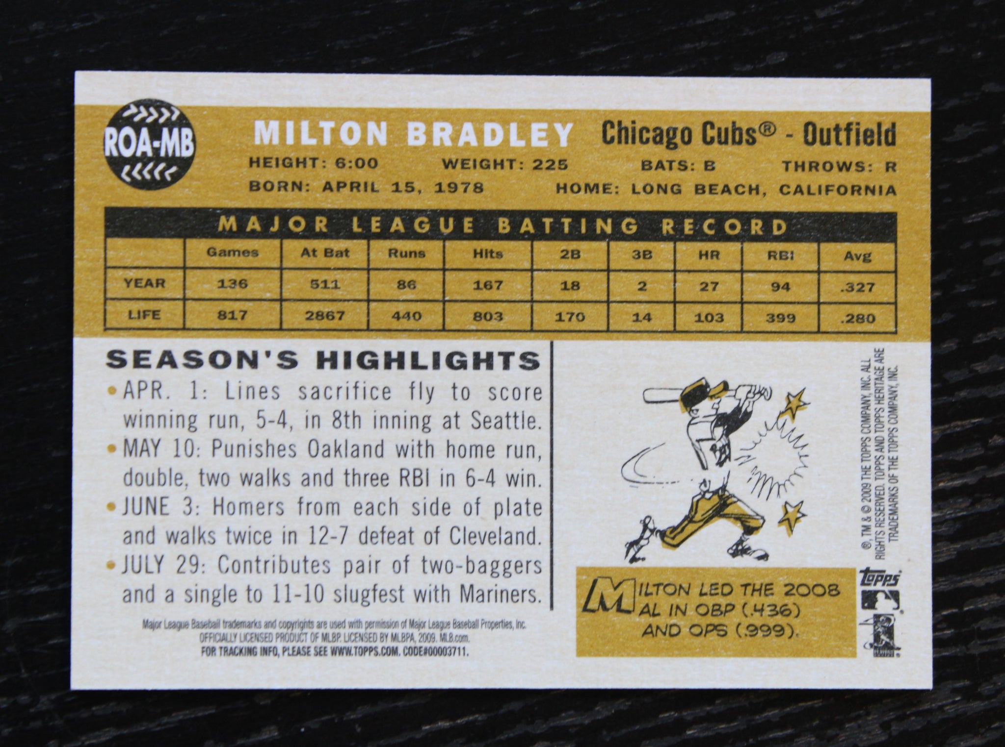 2009 Topps Heritage Real One Red Ink Milton Bradley Autograph 31/60