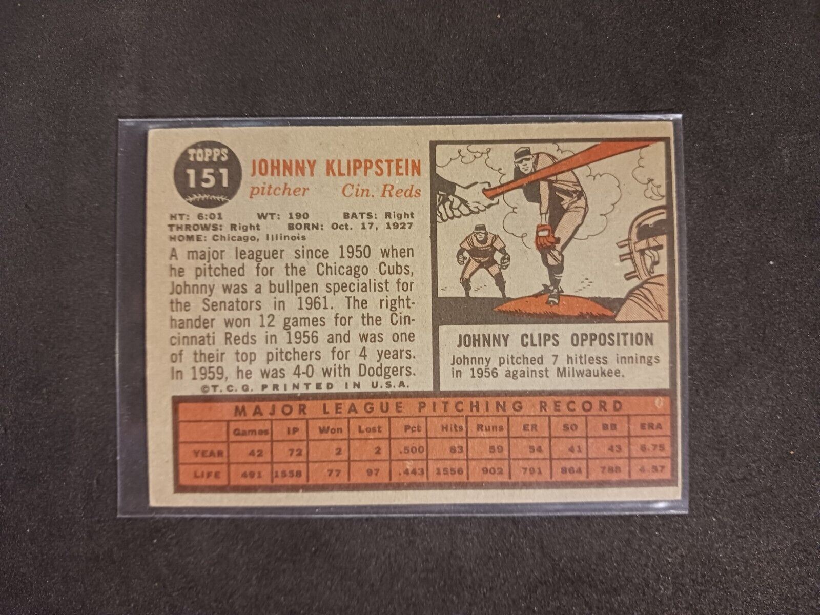 Thank you for viewing our listing for: 2011 Topps Heritage 50th Anniversary 1962 Buybacks #151 Johnny Klippstein - B