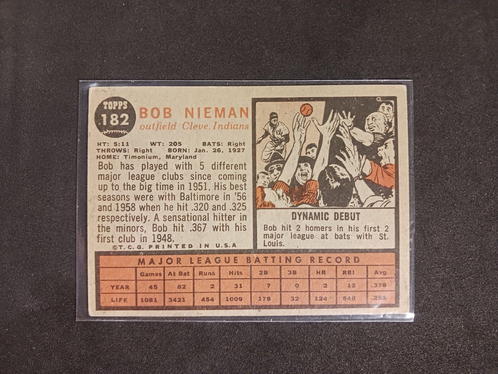 Thank you for viewing our listing for: 2011 Topps Heritage 50th Anniversary 1962 Buybacks #182 Bob Nieman Brown Back A