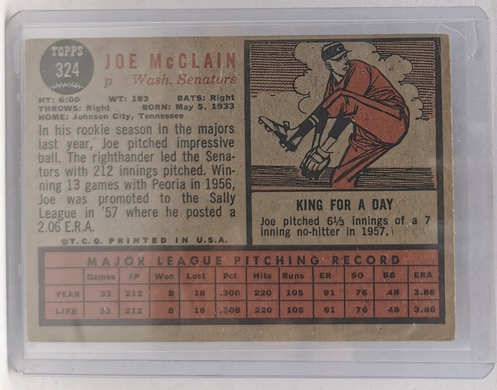2011 Topps Heritage 50th Anniversary 1962 Buybacks #324 Joe McClain