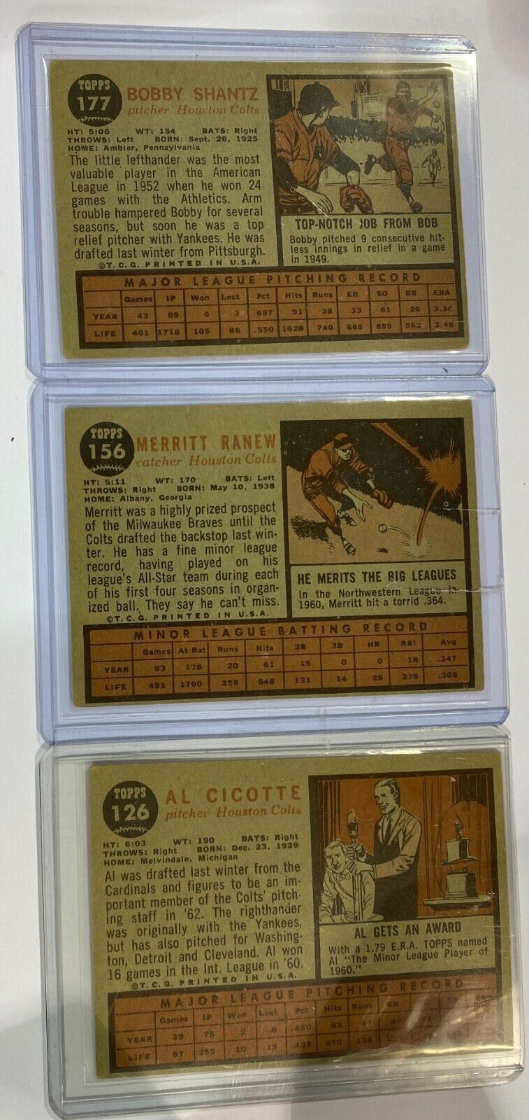 2011 Topps Heritage 50th Anniversary 1962 Buybacks Houston Colts Lot (3 Cards)