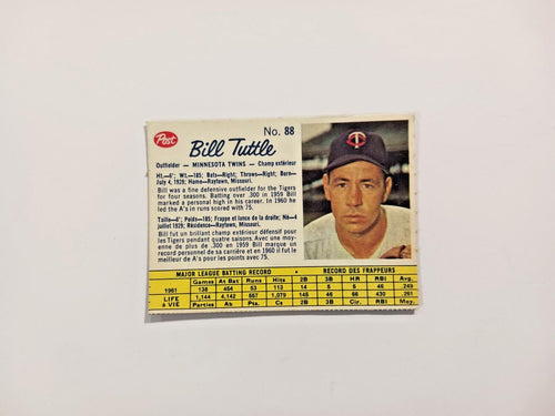 1962 Post Canada Bill Tuttle #88 Baseball Card Brown Back