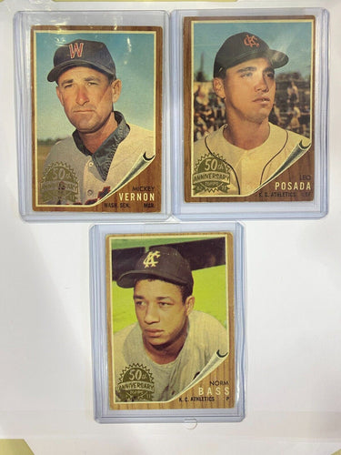 2011 Topps Heritage 50th Anniversary 1962 Buybacks Lot #7 (3 Cards) #122,152,168