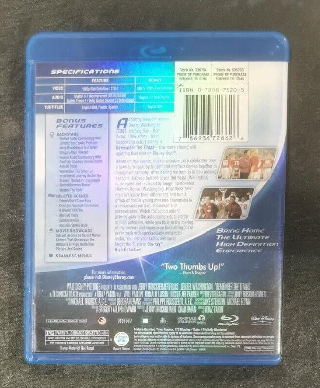 Thank you for viewing our listing for: Remember the Titans (Blu-ray, 2007)