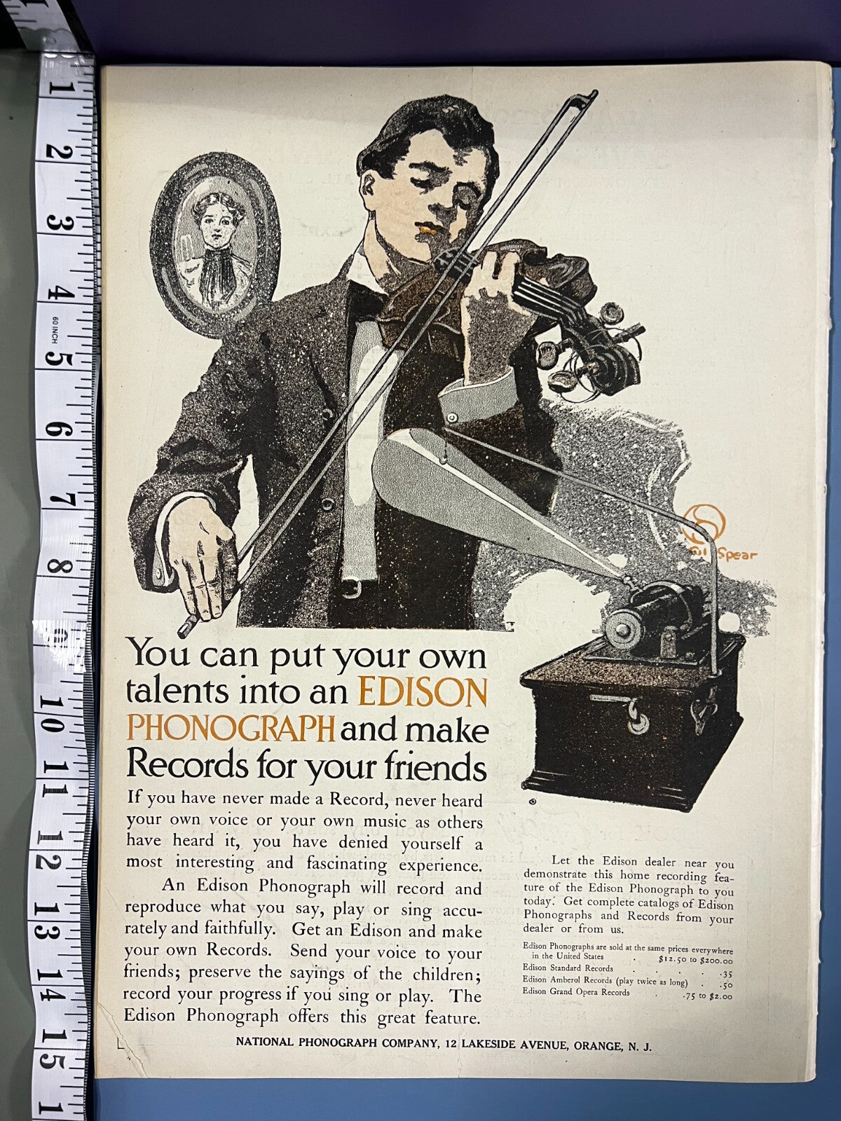 Vintage Collier's The National Weekly magazine dated October 15, 1910. Vol. XLVI No. 4. Cover features an illustration of children playing harmonicas. Back cover has an advertisement for Edison Phonograph.