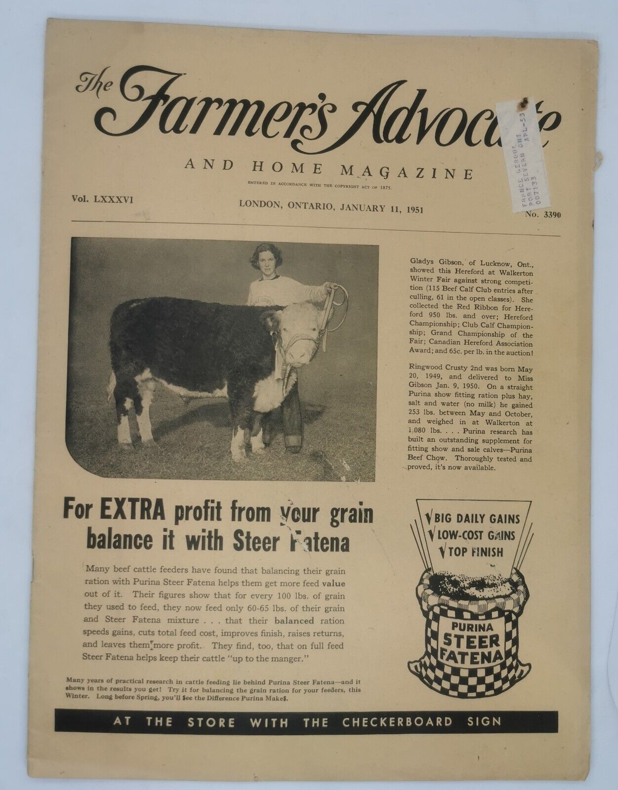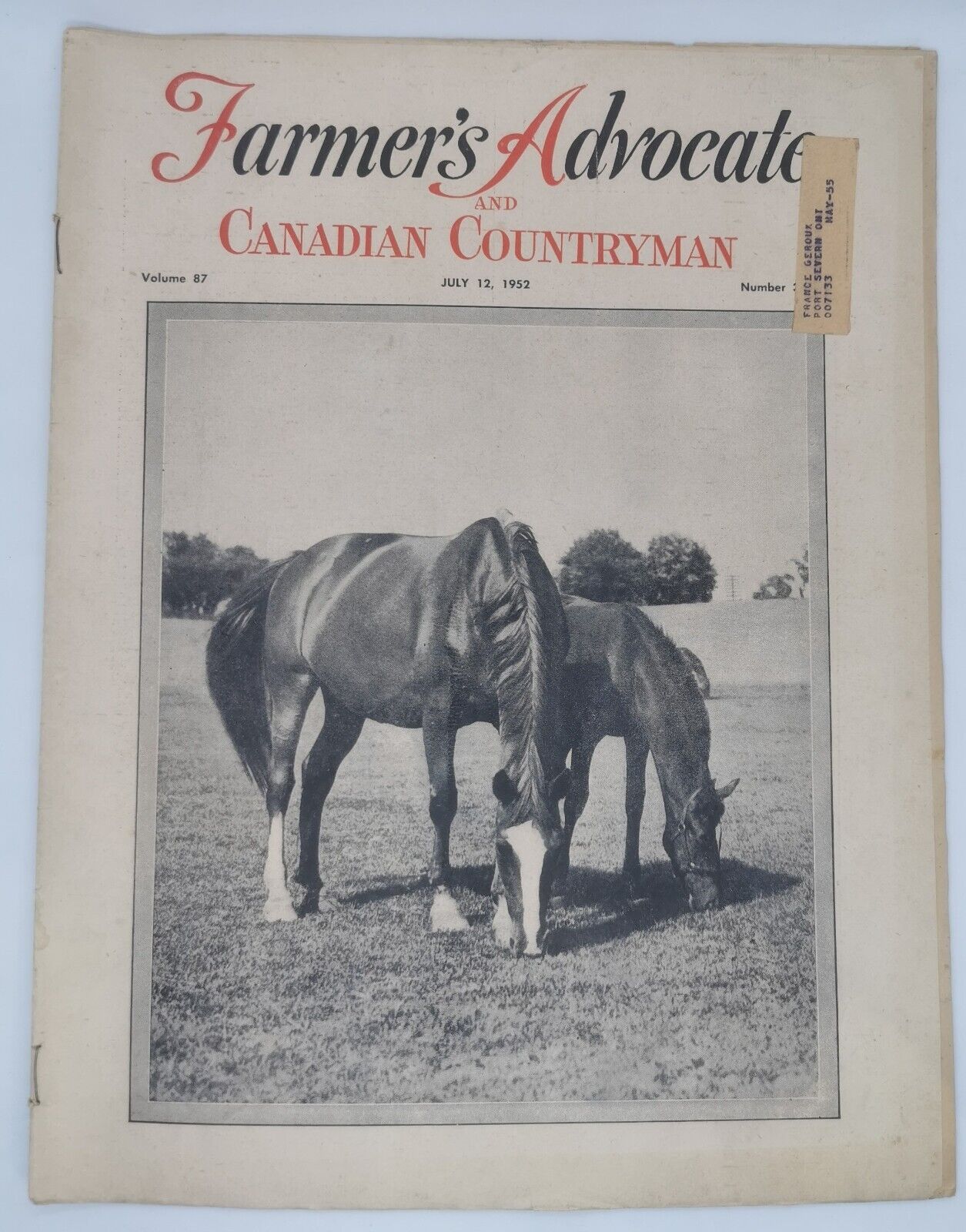 Farmer's Advocate Magazines Issued Jan 1951, July 1952