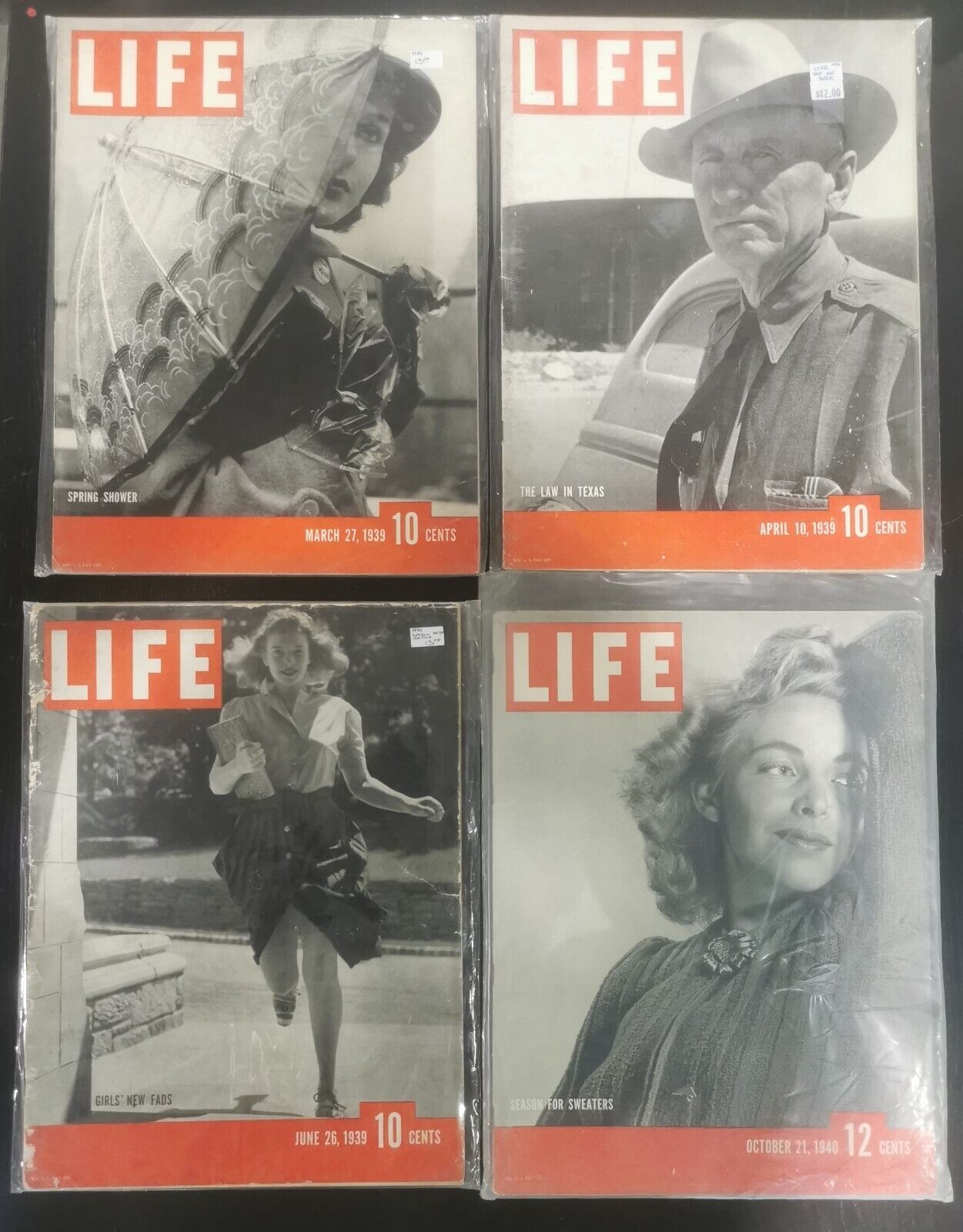 Life Magazines Lot Issued 1939 March 27, April 10, June 26, 1940 Oct 21