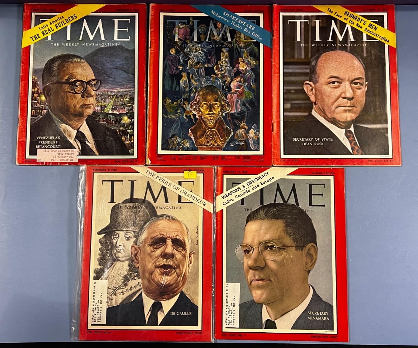 Thank you for viewing our listing on: Lot of 5 Vintage TIME Magazines 1961-1963: Rusk, Betancourt, De Gaulle