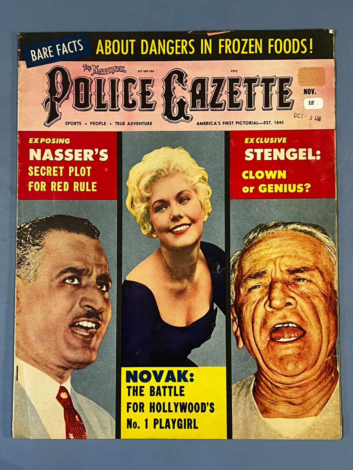 The National Police Gazette Magazine Nov 1958 Nasser, Novak, Stengel