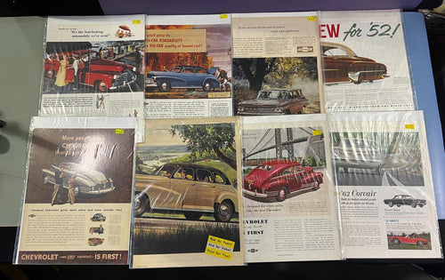 Lot of 8 Vintage Car Advertisements Chevrolet Corsair Mixed Ads Sleeved