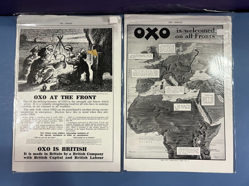 Vintage OXO Ads "The Sphere" Magazine 1914 & 1917 WW1 Era Lot of 2