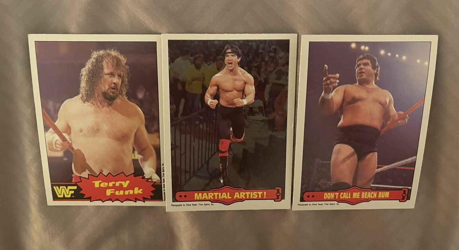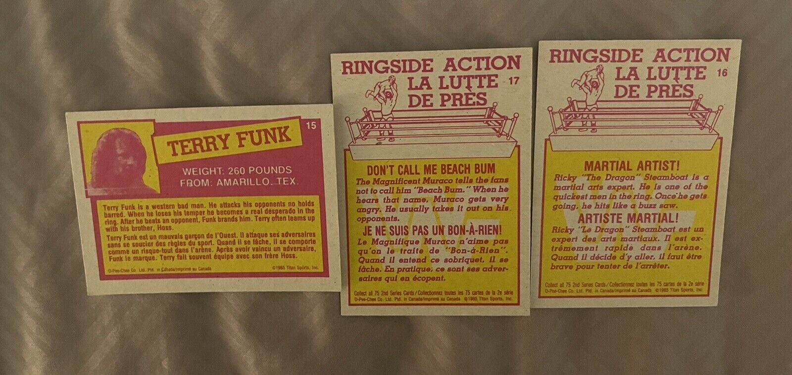 WWF O Pee Chee cards #15 Funk, #16 Martial artist#16, #17 Beach Bum