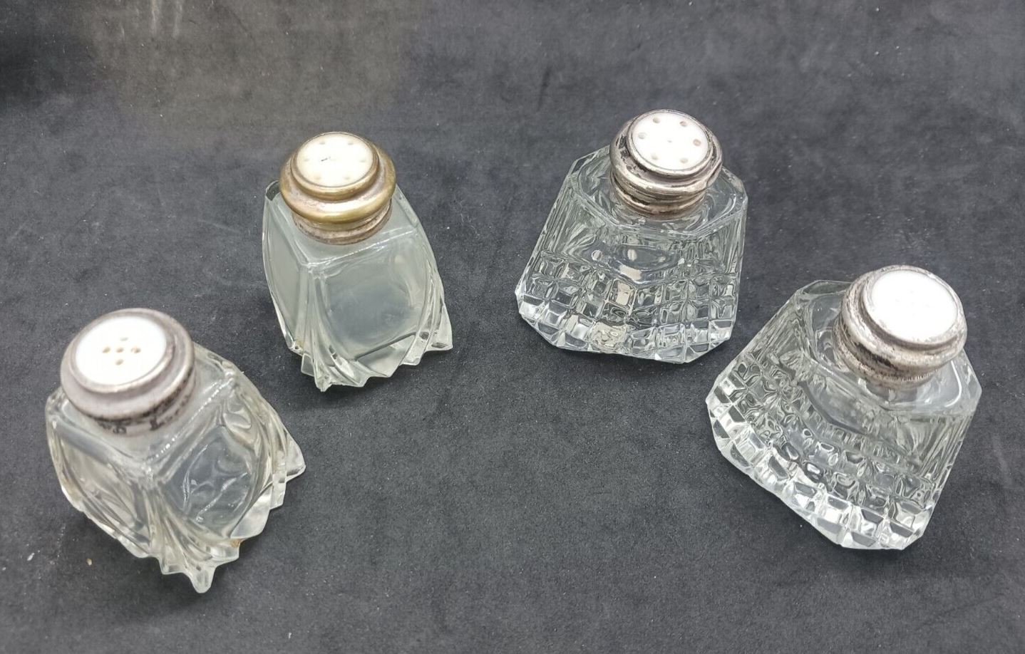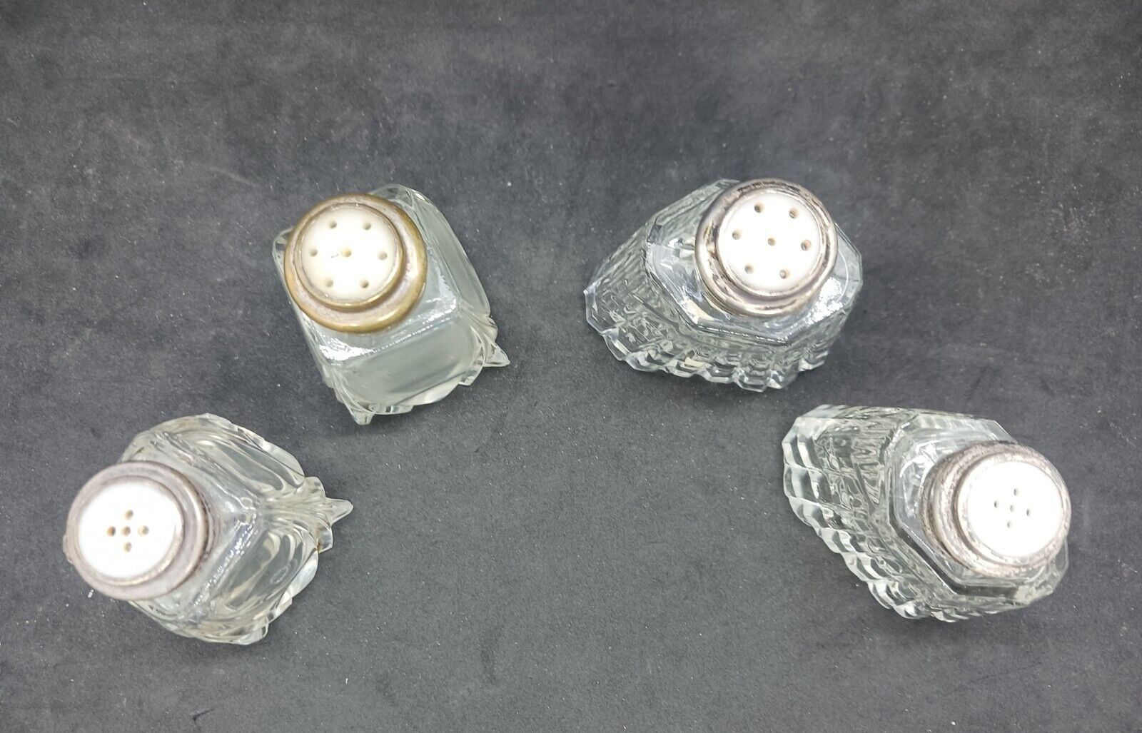 Thank you for viewing our listing for: Crystal Glass Salt & Pepper Shakers STERLING TOPS 2 pairs Lot #04