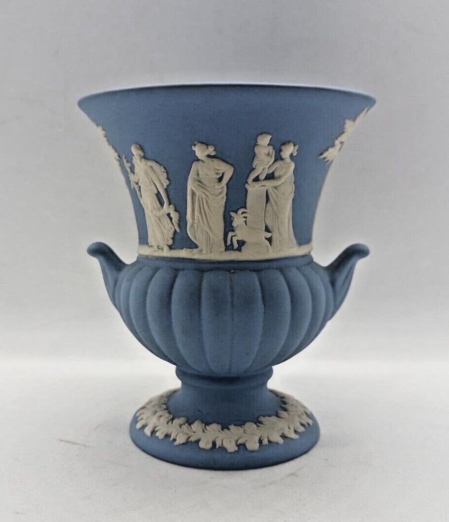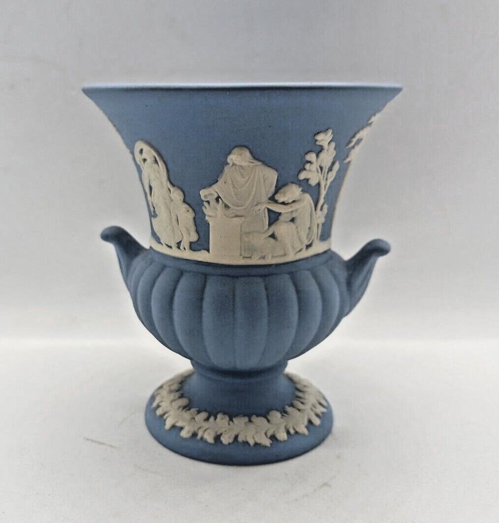 Thank you for viewing our listing on: Vintage Wedgwood Blue Jasperware Athena GREEK GODDESS Urn Vase Miniature