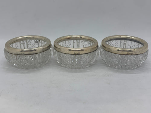 Set of 3 - Crystal Glass & Sterling Silver Salt Overlays