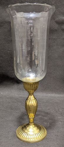 Decorative Gold Tone Based, Glass Cover Candle Stick Holder