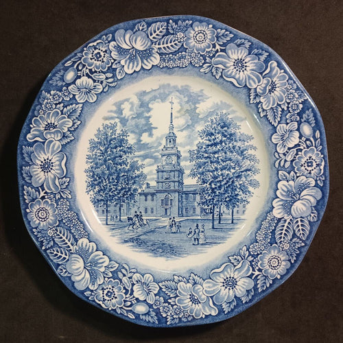 1970s Liberty Blue Historic Colonial Scenes Dinner Plate "Independence Hall"