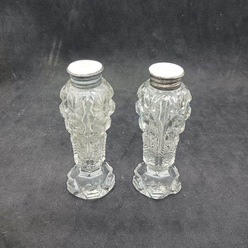 Crystal Glass Salt & Pepper Shakers STERLING TOPS Set #04