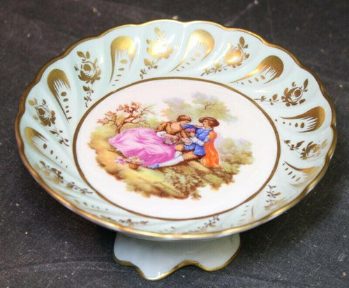 Limoges Signed Hand Painted Scene Footed Pedestal Candy Dish