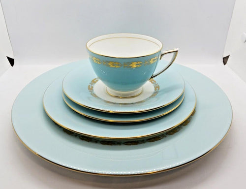 Minton Bone China Blue with Gold Leaves Trim Pattern 5 Piece Place Set x 4, 20pc