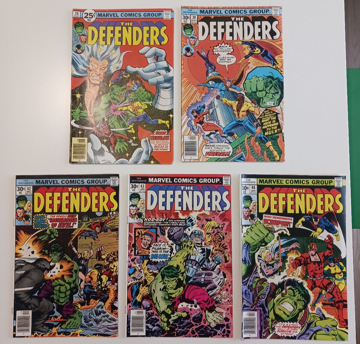 1976-77 Marvel Comics The Defenders #38,39,42,43 and 46 Newsstand Lots